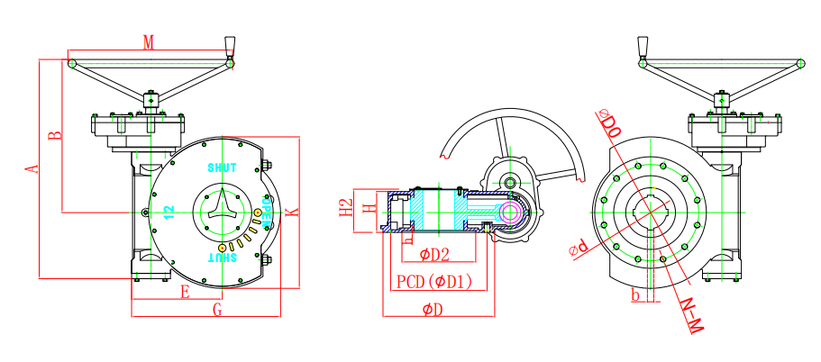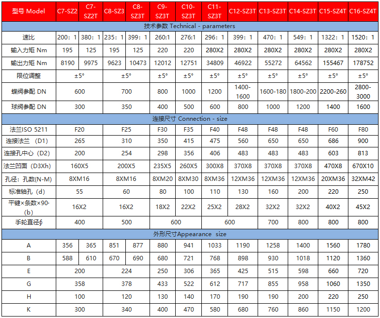 該系列是直齒輪箱與蝸輪箱對接組合成為二級傳動蝸輪減速增壓機構,提高了機械總效率,輸入小力矩,開動大閥門,使操作人員省力,每種型號提供多個傳動比,能更好的匹配不同規(guī)格的閥門。
